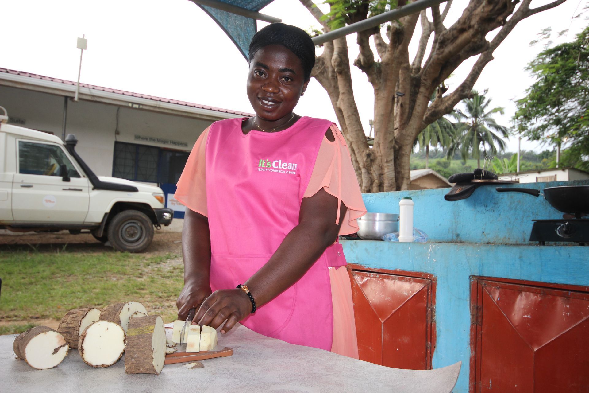 I have lived in the Middle East. I have travelled widely. I do not say this lightly: I have never met a happier, more generous, more warm-spirited group of people in my life. There was laughter everywhere — from the woman cooking cassava outside the volunteer base, to the child perched on the bonnet of our Land Rover clutching a Gilbert rugby ball, to the builders who flexed their muscles for the camera at the end of a long day's work.