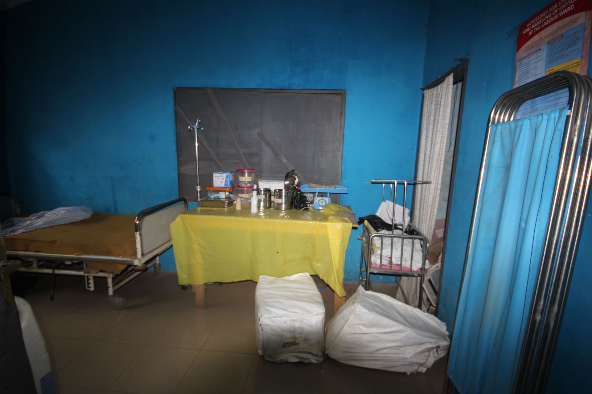 The delivery suite where babies are born was a small, blue-painted room. The sink where doctors and midwives wash their hands was hanging from the wall by a single bracket, the tap broken. The equipment on the table beside it was minimal but evidently cared for.