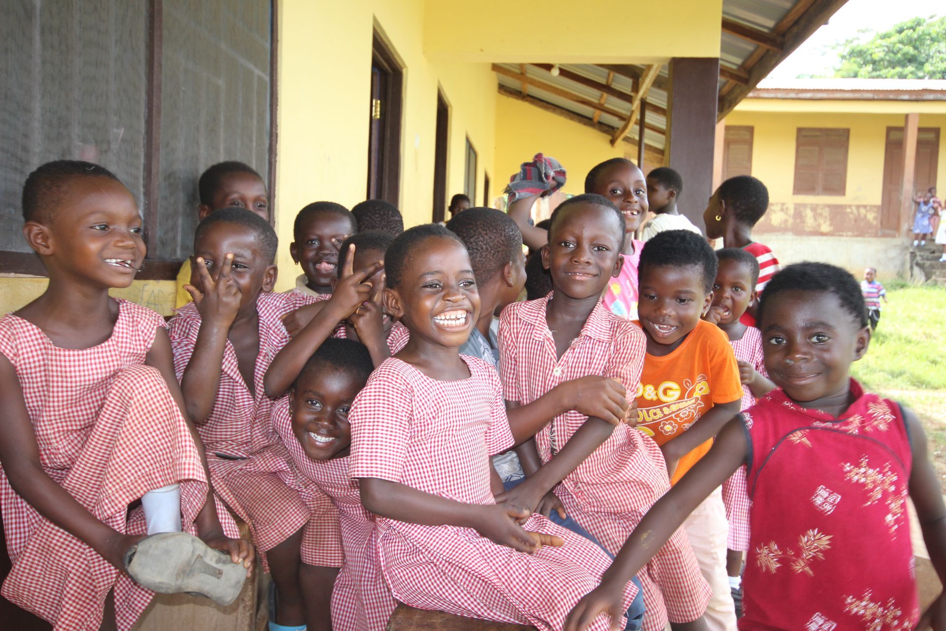 I thought about that for a long time afterwards. These teachers are doing a heroic job in conditions most of us cannot imagine. And the children — in their red-and-white checked uniforms, laughing and jostling for position in front of the camera — were utterly joyful.