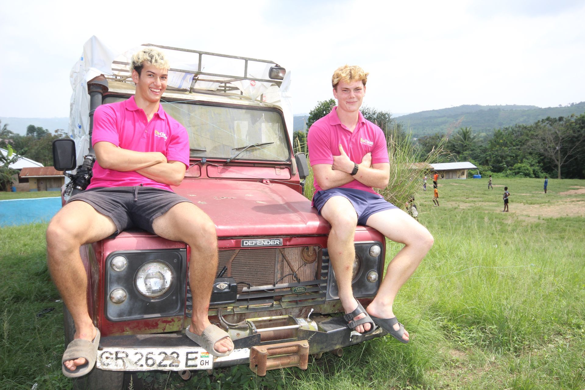 Most mornings began on a building site, mixing cement alongside professional local builders, plastering walls, shifting materials. I wore a bright pink polo shirt bearing the logo of my company, It's Clean, which helped fund the trip, and I got absolutely filthy in it. There is something grounding about hard physical labour in service of something real.